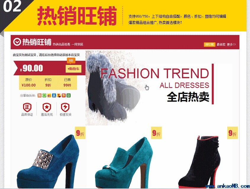 3.旺鋪拓展版:頁面背景設計、寶貝描述模板、寶貝分類模板、旺鋪左邊模板、旺鋪右邊模塊、旺鋪通欄banner、旺鋪公告模板、旺鋪自定義頁面模板、店招促銷區(qū)套裝、Flash模板區(qū)(促銷區(qū)模板、頁面模板、分類模板)、店鋪公告模板;