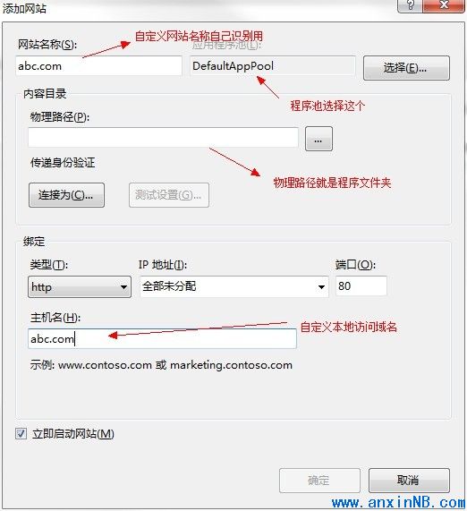 第二步、設(shè)置新建網(wǎng)站基本信息,設(shè)置注意點(diǎn)看紅色字體標(biāo)注