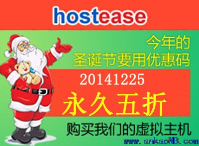 在眾多美國虛擬主機(jī)商中,HostEase推出的優(yōu)惠碼可算是多給力的了。為迎接2014年圣誕節(jié)的到來,HostEase又推出了新主機(jī)優(yōu)惠碼:20141225,使用該優(yōu)惠碼購買任意虛擬主機(jī)(包括香港主機(jī))方案均可永久享受半價優(yōu)惠,有效期為12月31日。