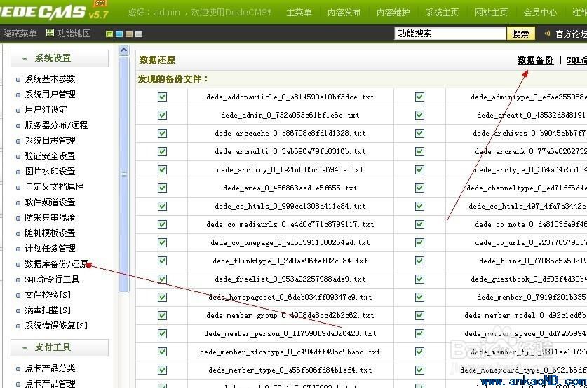 4.進(jìn)入后臺,點(diǎn)擊“系統(tǒng)”-“數(shù)據(jù)庫備份/還原",執(zhí)行“數(shù)據(jù)還原”即可。