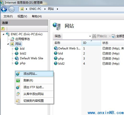 第一步、打開(kāi)iis7 到下圖界面添加站點(diǎn)