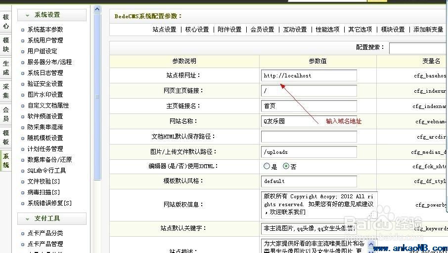 5.后臺,點(diǎn)擊“系統(tǒng)”-“系統(tǒng)基本參數(shù)",修改網(wǎng)站地址,填好你的域名,保存。